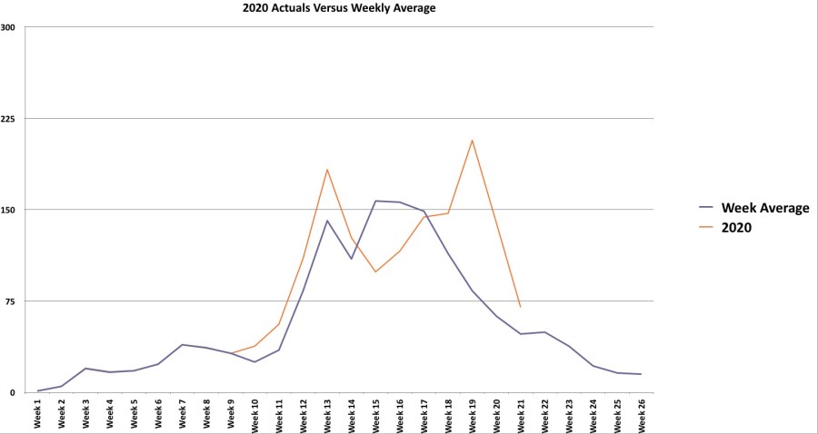 average versus actuals up to week 9