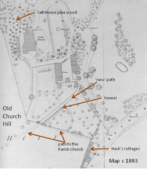 The first section that we know today, which leads off Salthouse road opposite the carpark, was opened later and is shown on a map from c. 1883 (photo right). The then owner of the Salt House had a tunnel built under the path to enable him to reach the part of his property now otherwise cut off.
