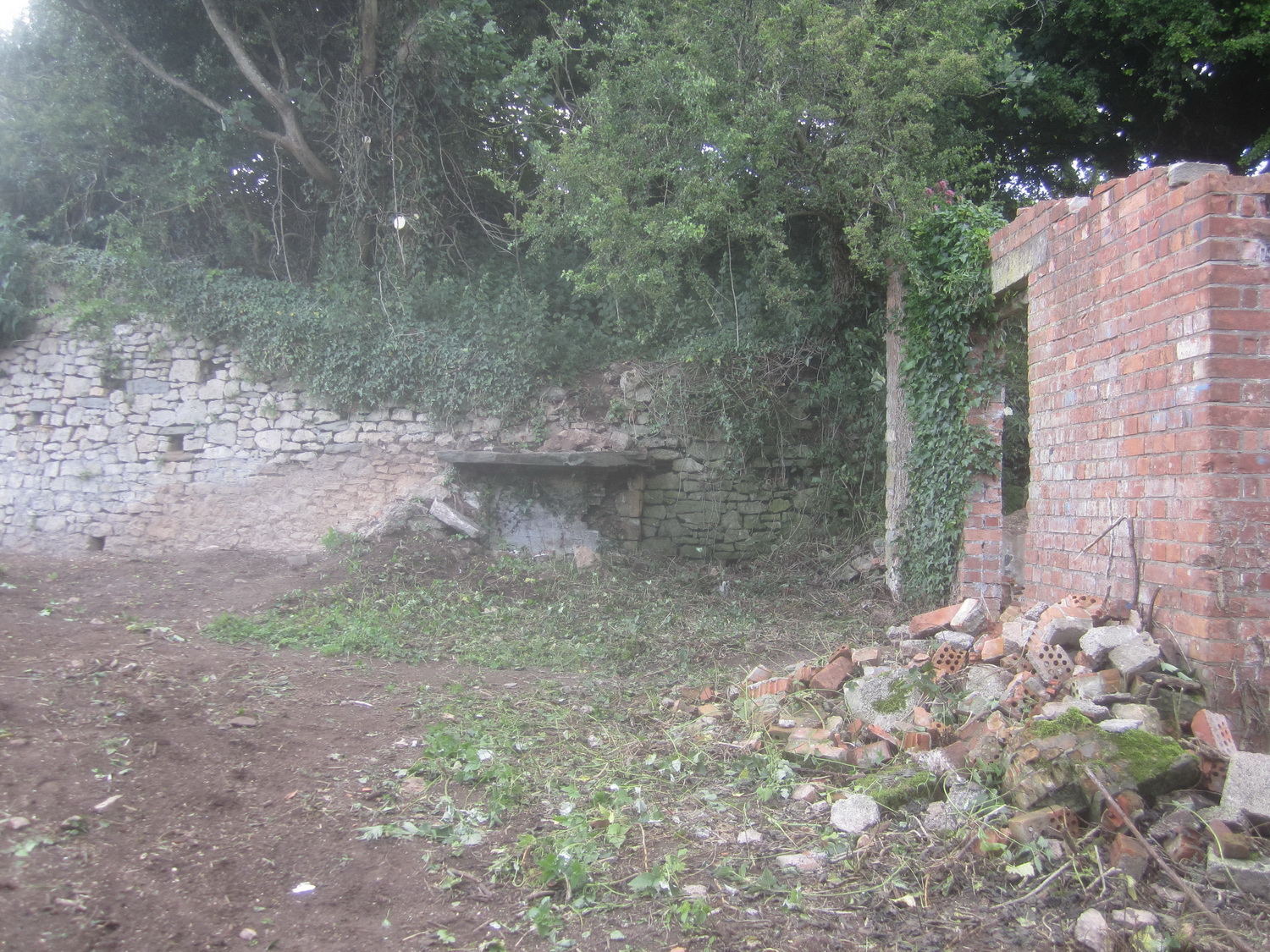 nettles growing in the rubble are pulled and sycamore boughs overhanging the wall are removed