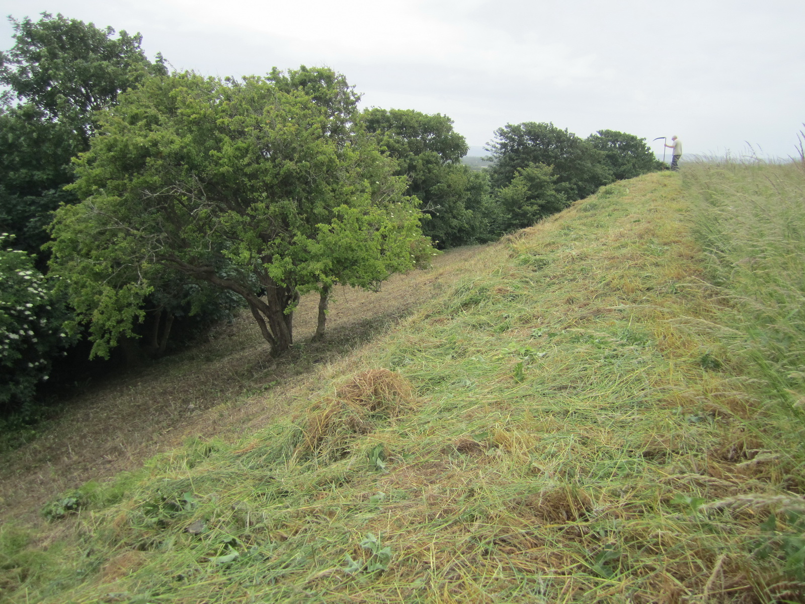 Wain’s Hill rampart slope after completion of June scything
