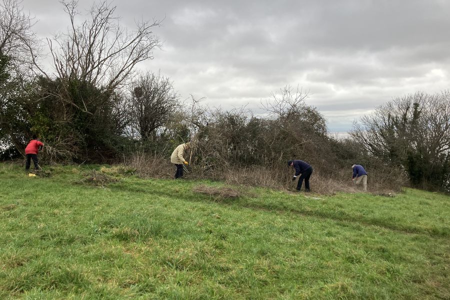 On 29 January we finally enjoyed a dry afternoon, reducing the spread of scrub into grassland near the viewpoint above the zigzag steps on Church Hill.