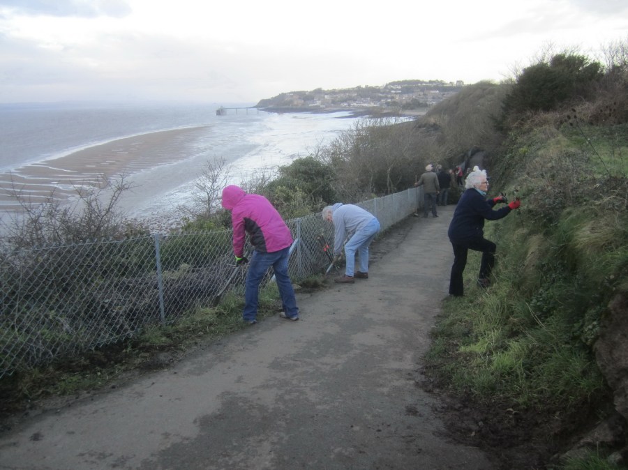 clearing weeds, mud and brambles from the coastal path b