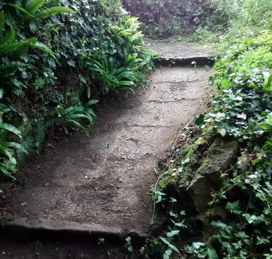 the path above the zigzag steps becoming overgrown