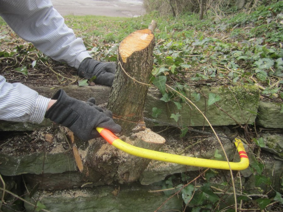 self-seeded hawthorn removed from the wall and concreted yard
