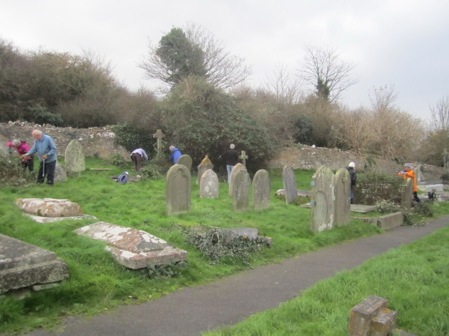 clearing brambles in St Andrew’s churchyard