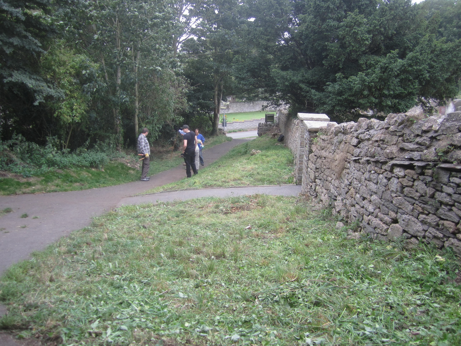 selectively weeding and scything the bank