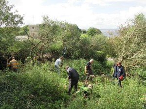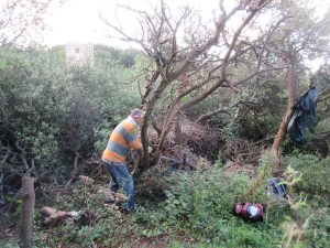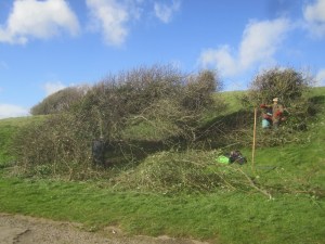 Clearing scrub on the site of the old gun battery on Wain’s Hill