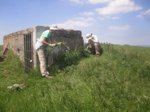 Hand pulling black nightshade and nettles at Wain’s Hill battery, and tidying up rubble