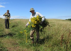 Wild radish control continues on Church Hill while ragwort is pulled on both hills.