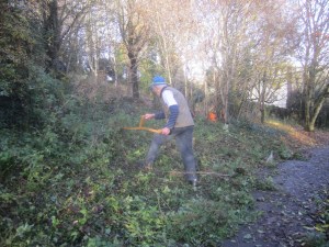 Cutting and grubbing out encroaching brambles etc. on Church Hill