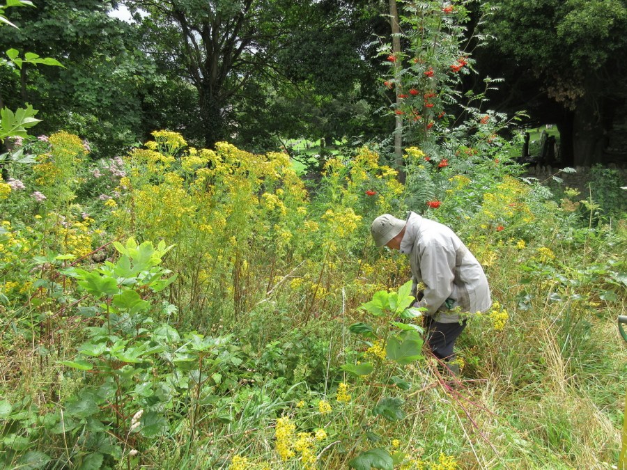 digging out ragwort with a ragfork