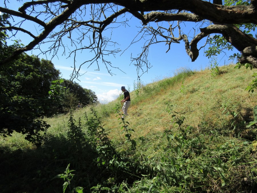 nettles and other rank vegetation at the bottom of the slope are also cut and teasles further up preserved