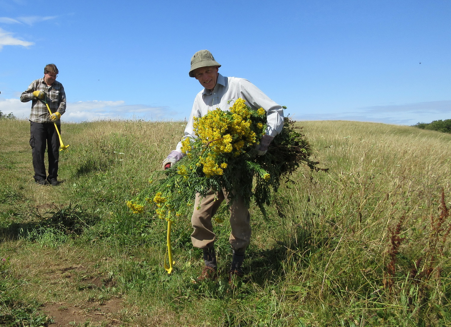 clearing nettles, bramble shoots, creeping thistle and wild radish