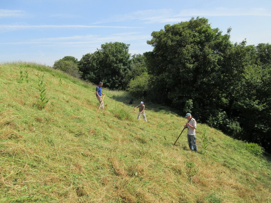 seeding grasses and overhanging vegetation on Hack's Way clipped back before mowing