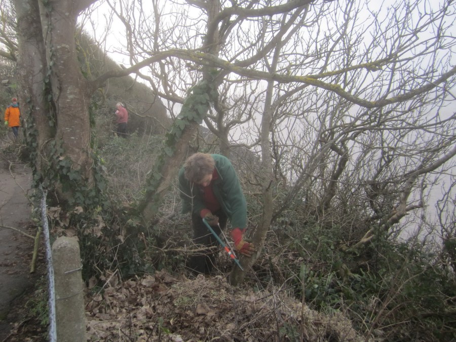 cutting-back-elder-and-other-scrub-opposite-a-bench
