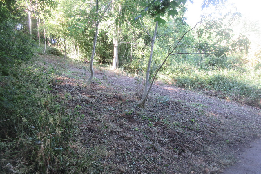 enlarging the glade by forking out more brambles & nettles