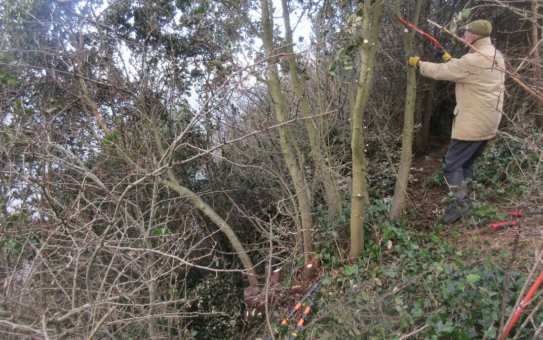 cutting back brambles beside the 1923 path