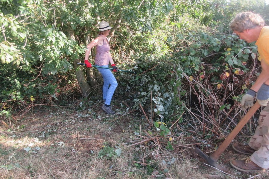 clearing away cut brambles and grubbing out their roots