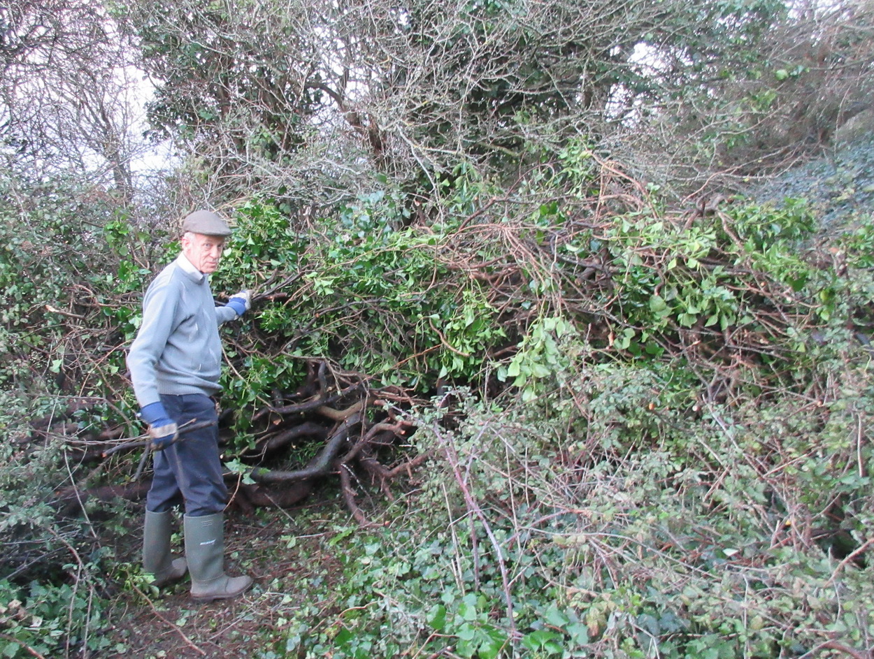 creating a ‘dead hedge’ habitat with cut blackthorn and ivy