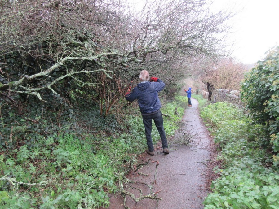 cutting back overhanging blackthorn