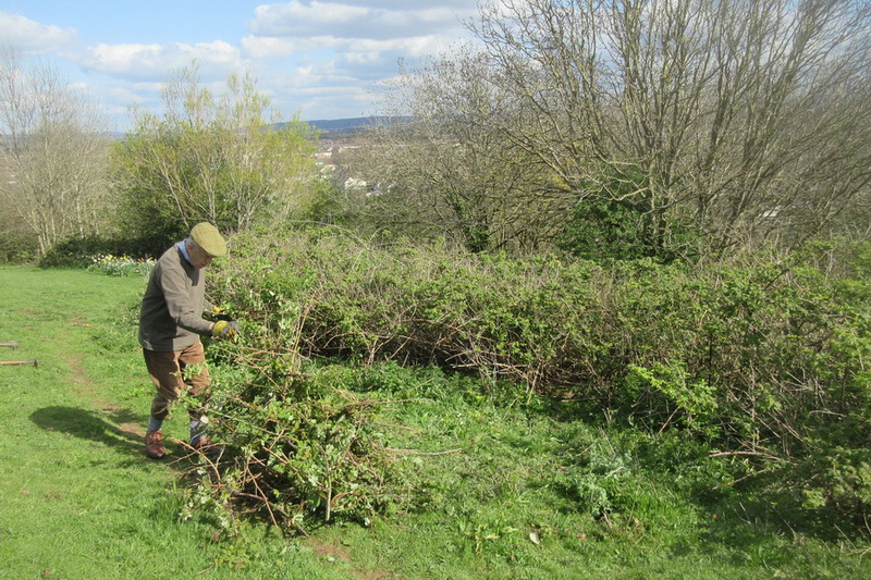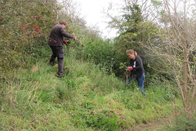 Pruning buddleia on the south-facing slope of Church Hill and cutting marginal brambles