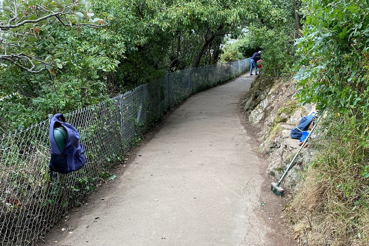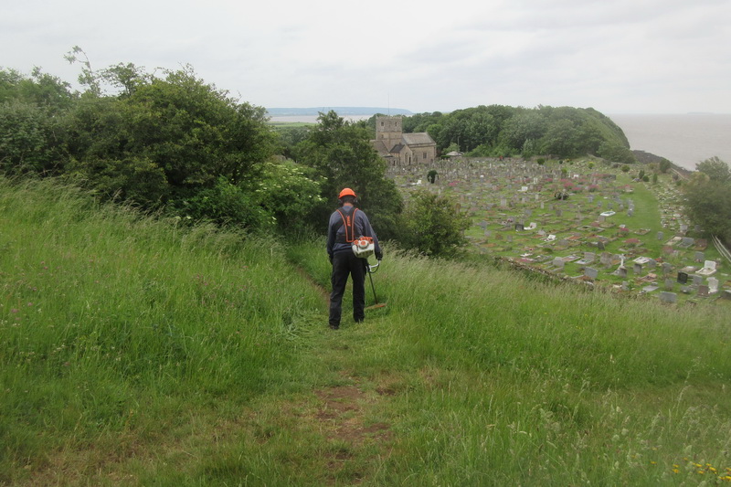 Weeding and sweeping the coastal path near the cemetery and the badger bridge