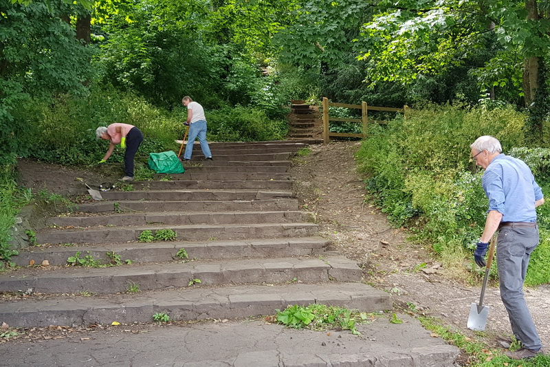 Church Hill – pulling nettles, scything grass & tidying the zigzag steps to improve access.