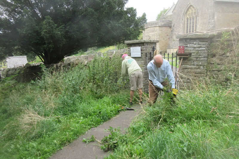 This bank by St Andrew’s Church is scythed after nettles are pulled & elder shoots cut.