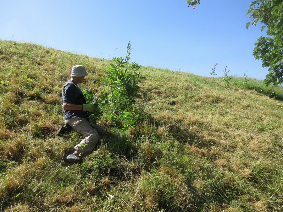 nettles remaining after scything are pulled by hand