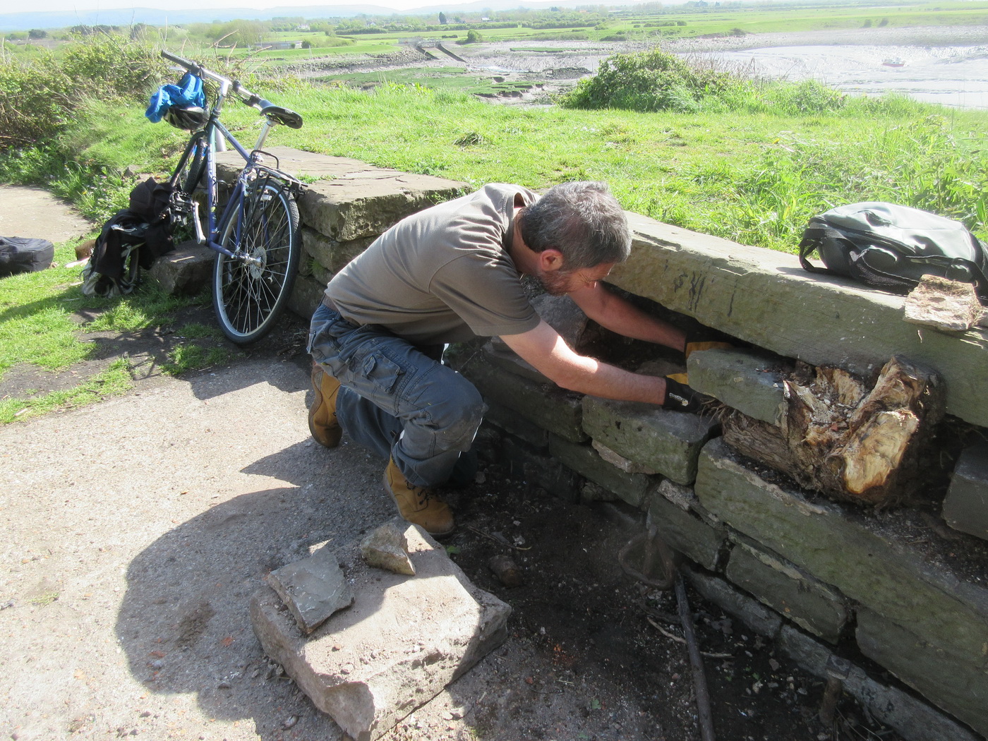 preparing a temporary fix by replacing dislodged stones