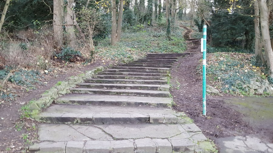 the stone steps beside Marine Lake leading to Poets’ Walk