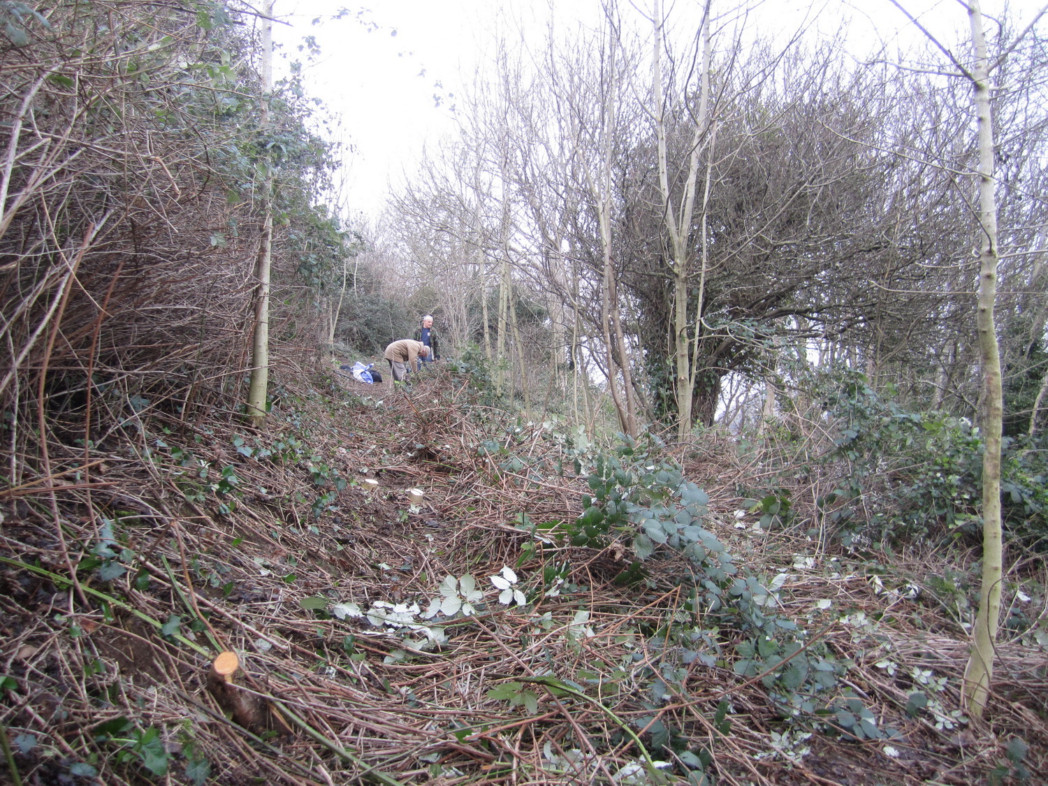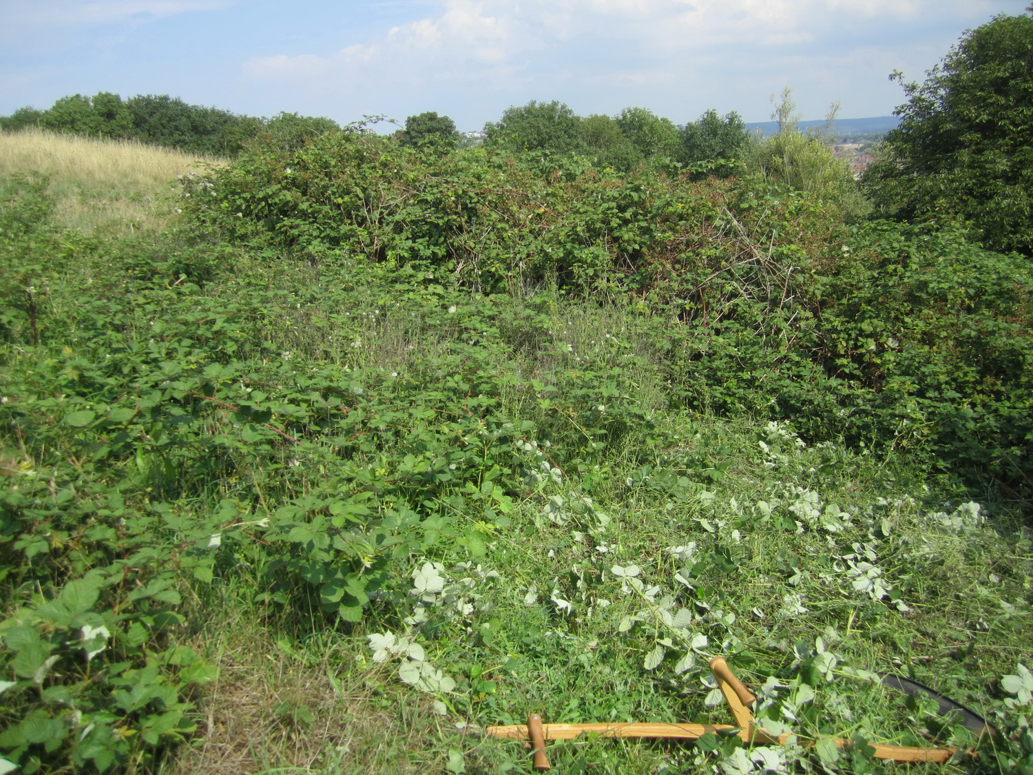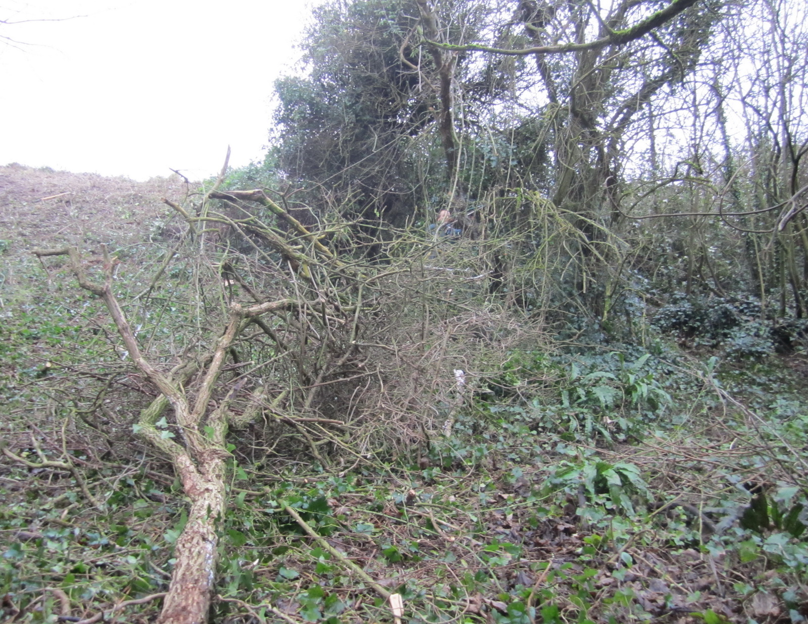 Feral raspberries scythed and raked off from the southern edge of the Church Hill plateau
