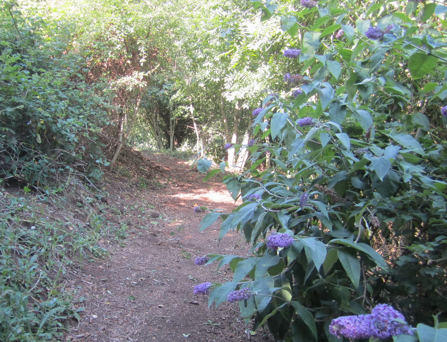 Buddleia (a non native) has been left to grow beside the newly restored Church Hill path as its flowers are much loved by butterflies .