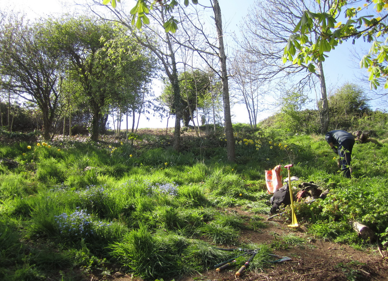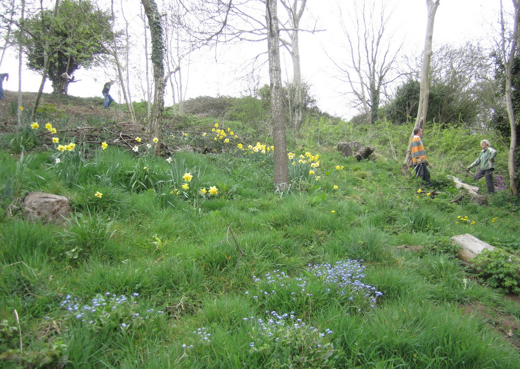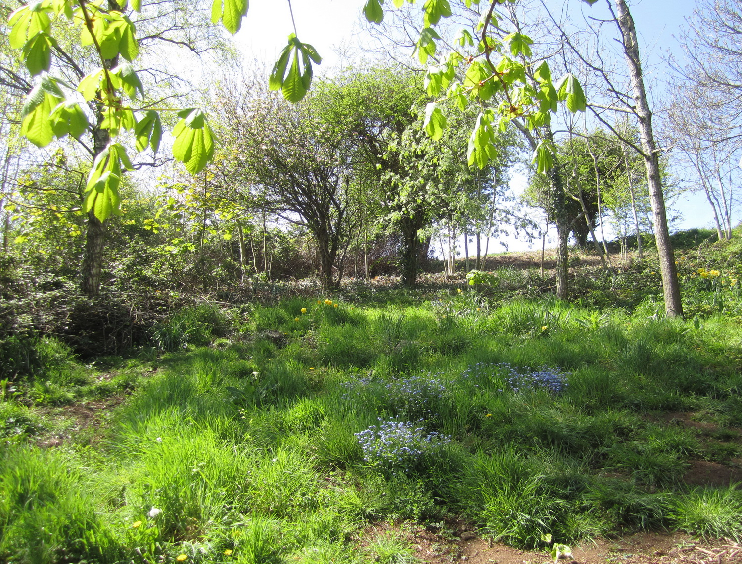 Woodland behind Salthouse Court, Church Hill – previously introduced daffodils and forget-me-nots flourish again once scrub has been cleared away.
