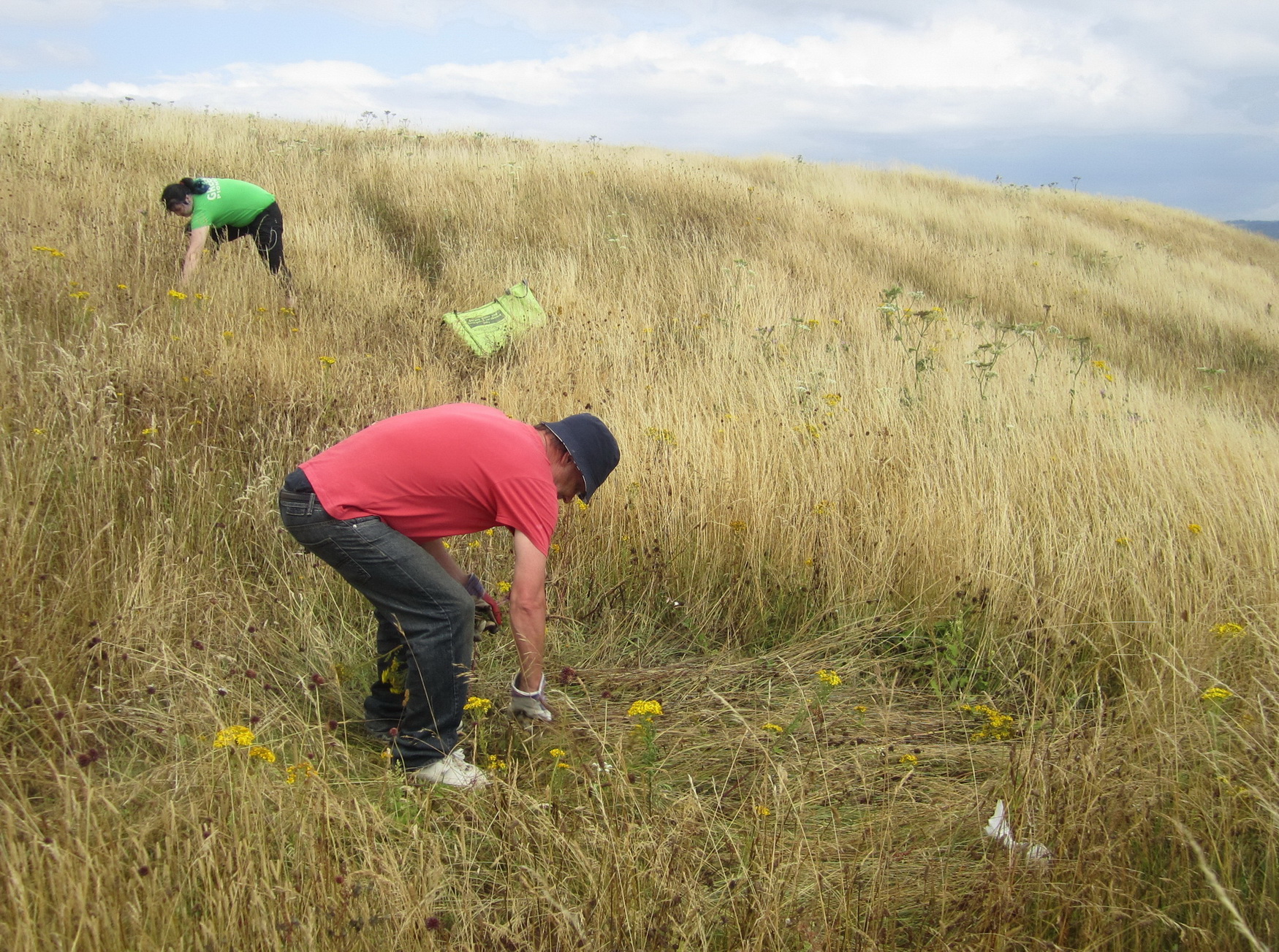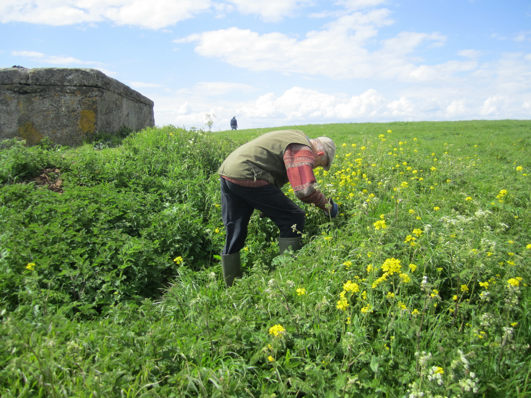 Wain’s Hill pillbox area – hand pulling wild turnip and nettles before scything