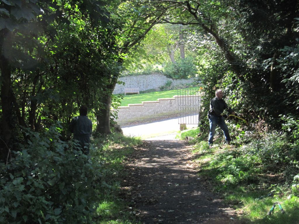Members of the Clevedon Woodcutters for Wildlife weeding the approach path to Church Hill from Salthouse Road, on behalf of the Friends of Poets’ Walk