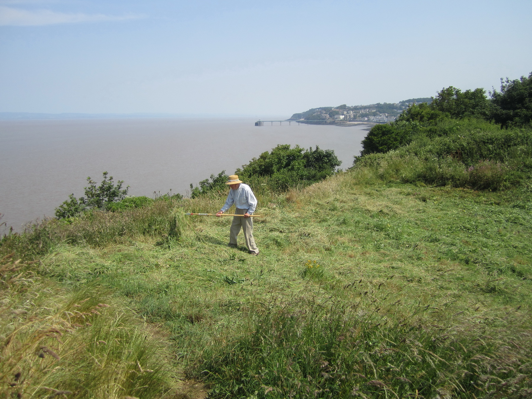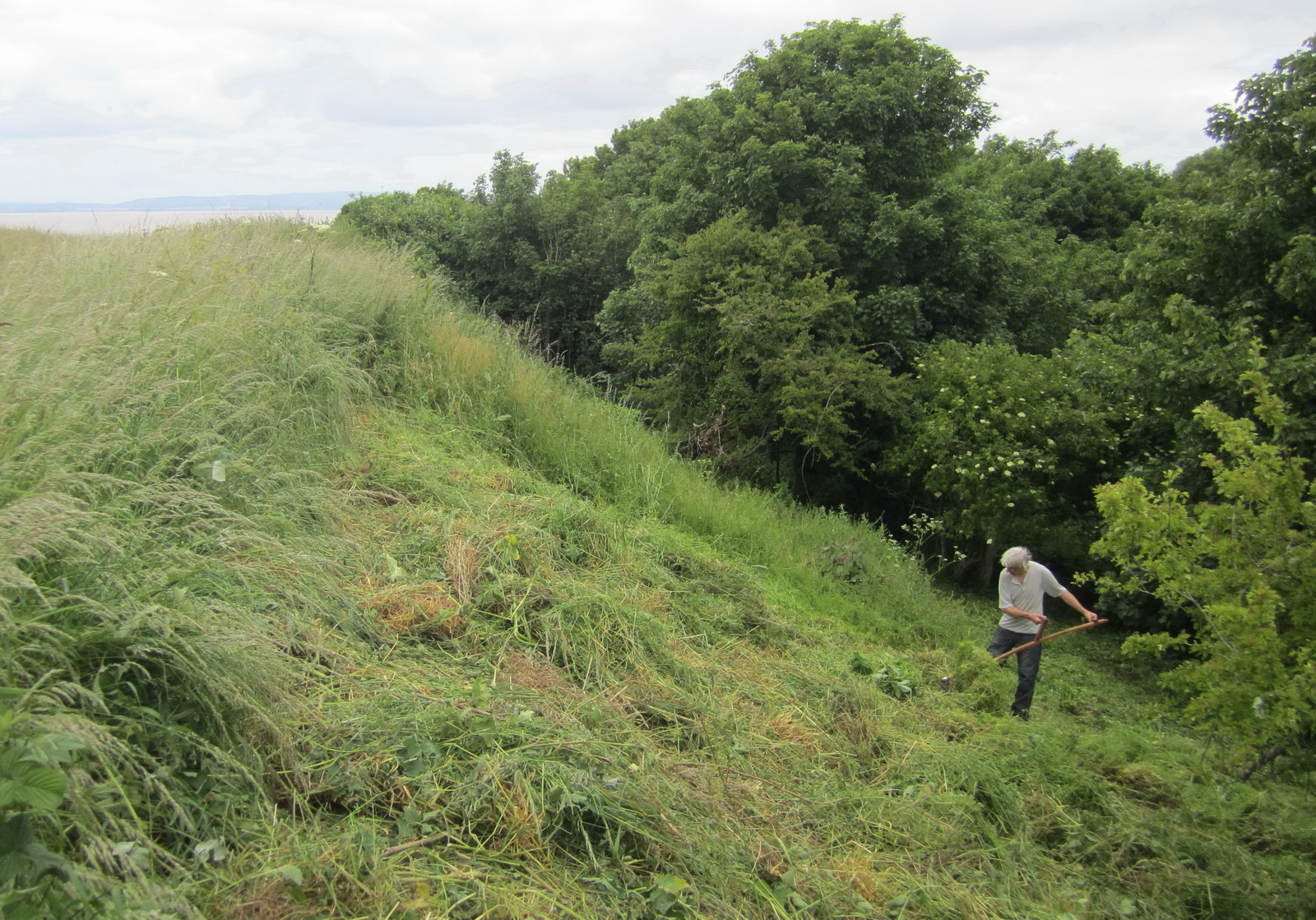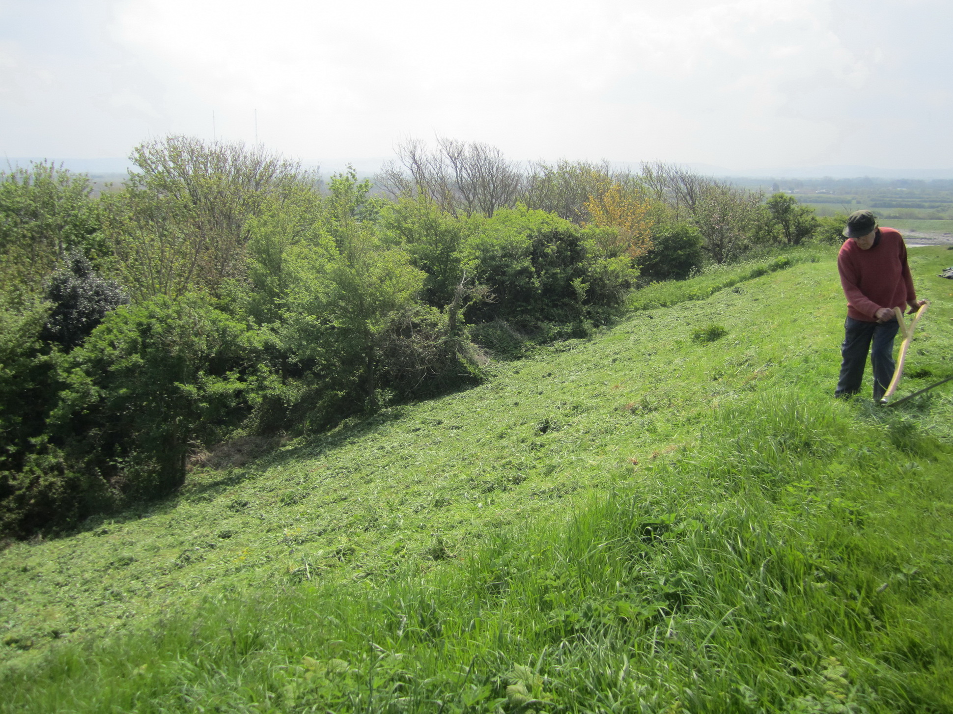 The ‘June cut’ scything of the Wain’s Hill ramparts nearing completion