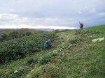 Weeding the newly restored old path across Church Hill southern slope