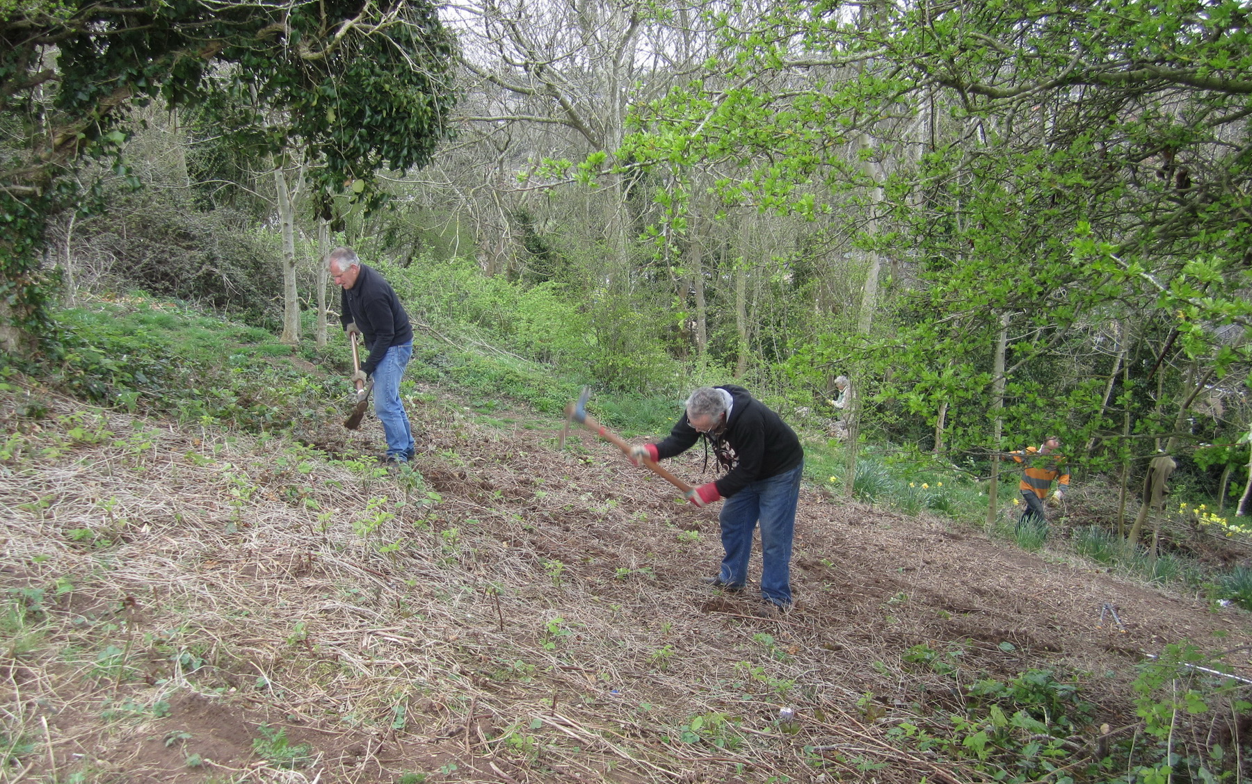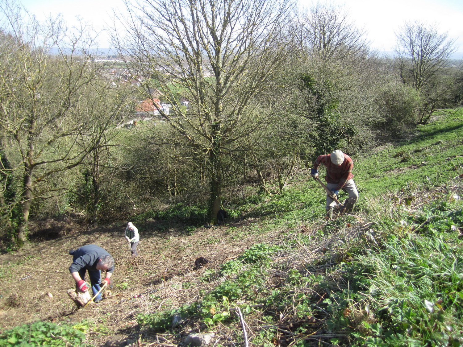 Grubbing out bramble roots in woodland on Church Hill to prevent recolonisation
