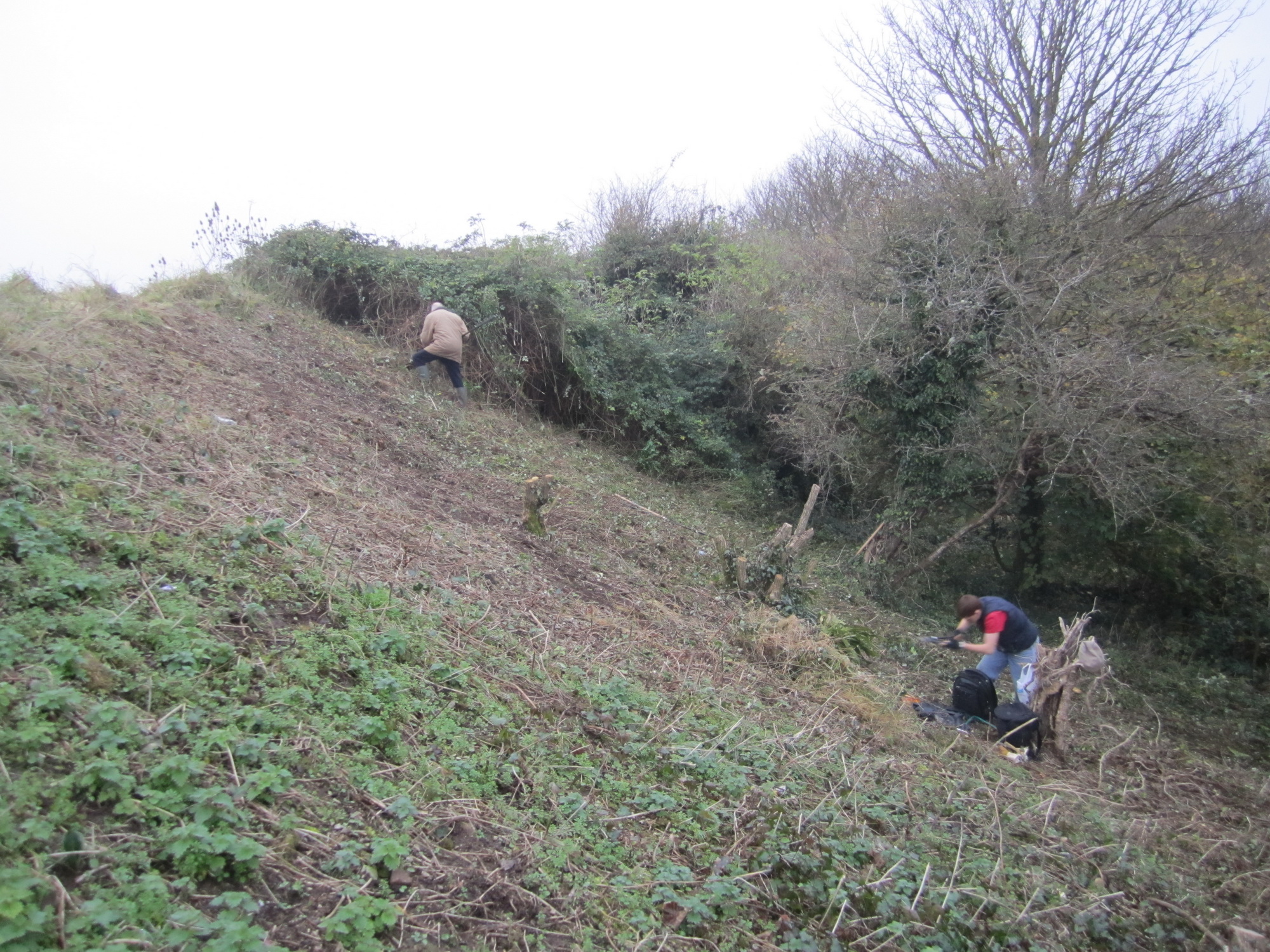 Clearing bramble and elder on Wain’s Hill rampart slope (spot the volunteer!)