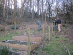 With help from two 6th Form students and their  director, the Woodcutters set out fence posts around the vegetable and fruit tree plot using recycled materials from a dismantled chainlink fence at the edge of the wood. Horizontal wires were attached to the posts. Meanwhile, some of the Woodcutters continued to clear brambles, further enlarging the grassy area behind the 6th Form block. Students attached the old chainlink fencing the following week, on 11th February.
