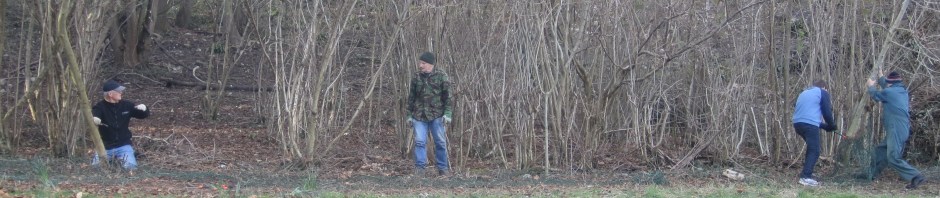 The Woodcutters removed brambles on both sides of the old chainlink fence (formerly erected to protect newly planted hazel from deer). Debris was raked up and litter collected.