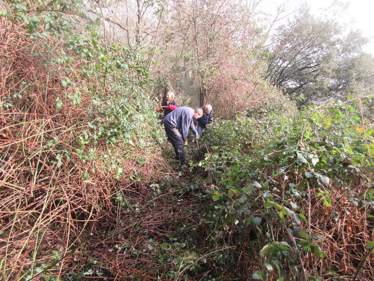 cutting bramble to restore access along a woodland trail