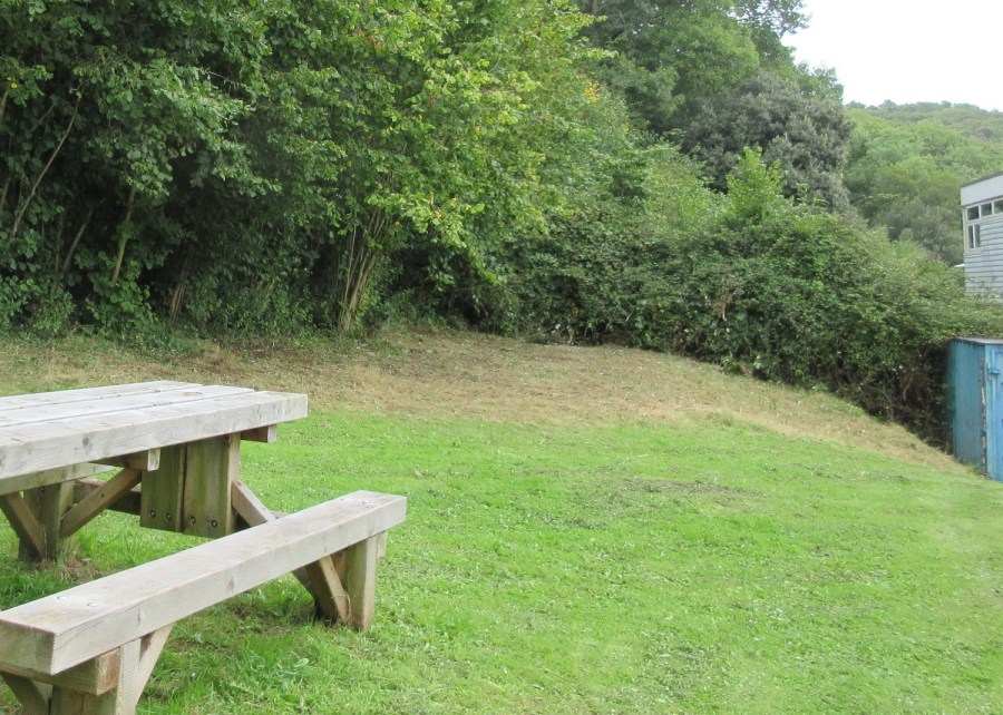 ragwort needs to be pulled before this overgrown corner is brush-cut