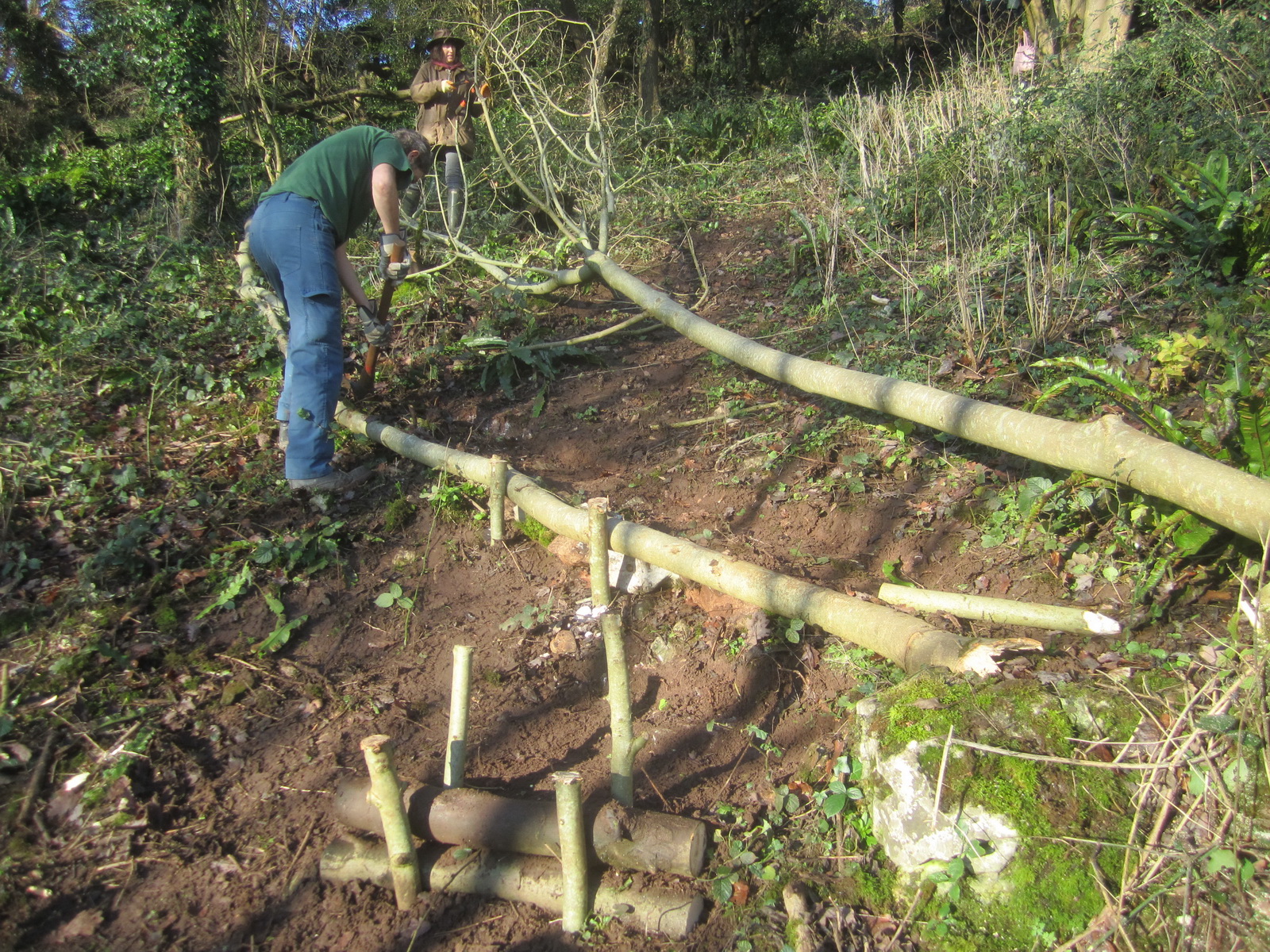 lining paths and constructing steps with freshly cut material