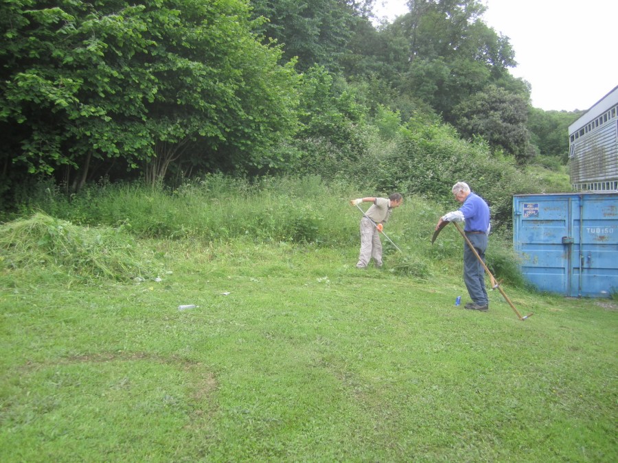 rank vegetation is scythed and raked off