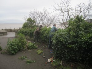 On 15th January 2015 the Friends of Poets’ Walk followed up work by the Woodcutters and North Somerset Council contractors by cleaning and sweeping the access paths to Marine Lake and the path above to the Lookout (photo right). Volunteer hours 20.