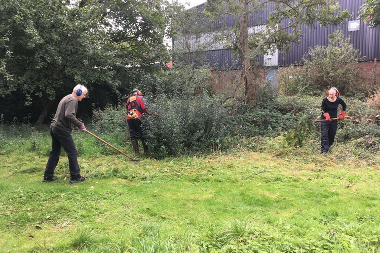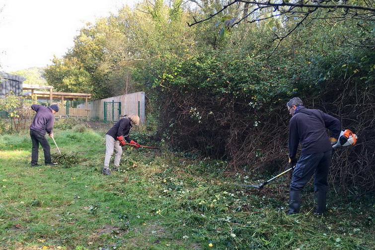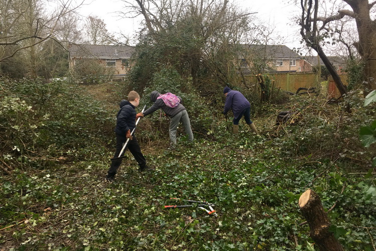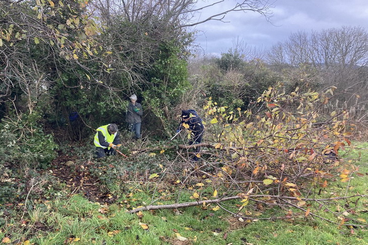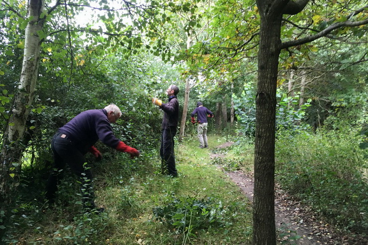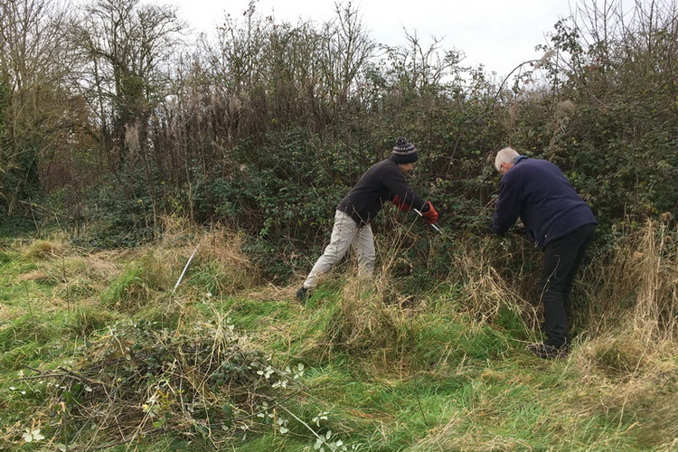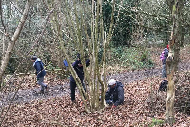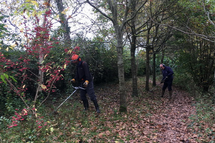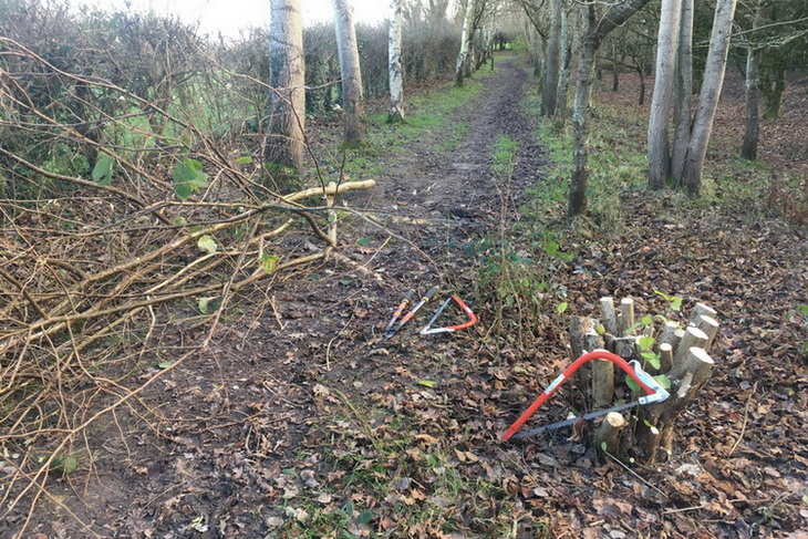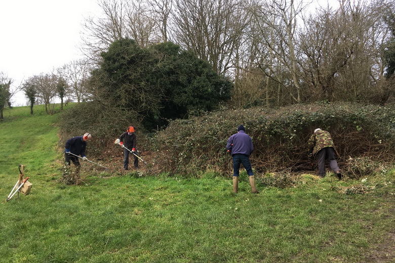 Clearing brambles from the top hedge and under the trees in Quinney’s Wood