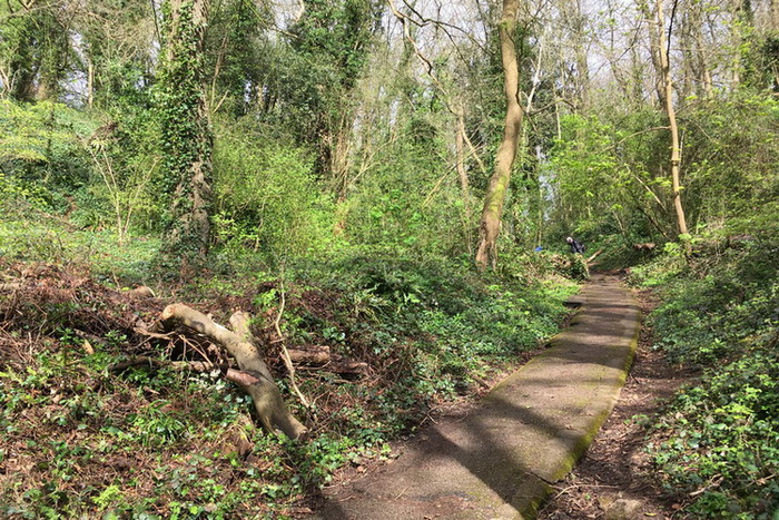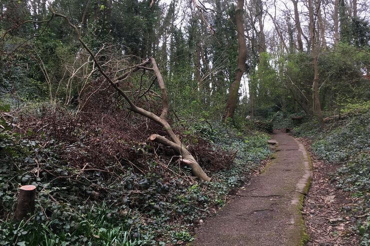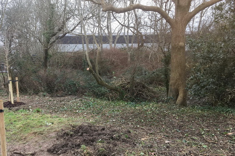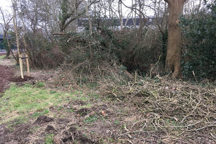 Strawberry Hill woods (the Fir Woods) – the banks of the path from Thackeray Road are cleared of brambles. A large and untidy brash pile left by contractors is much reduced.