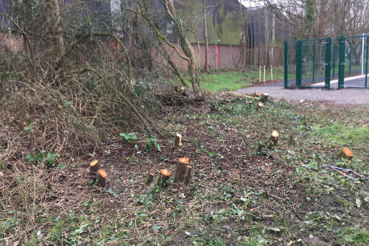 The Woodcutters embark on a fresh assignment in a small community area beside the newly built Baytree School off Brookfield Walk. Rubbish is removed, access to the wooded area enabled, and brash, brambles & branches used for habitat piles.